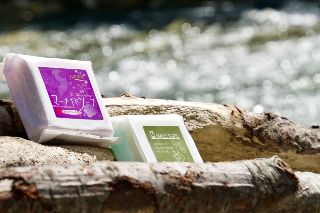 製造工場へ連絡をし、この時期だからこそ(新型コロナウイルスによる外出自粛)、じっくり開発できる時間があると思います。と伝え、協力していただきました。配合成分の変更をしながら、試作品を作っていただきました。 重視したゼラニウムの香り。洗顔後の効果、石鹸の色具合、等、考慮した石鹸が今回新商品として発売された、マーメイドソープグリーンです。薄グリーンは森の新緑をイメージ。手に取るたびに、不思議の国のアリスが、夢いっぱいに活動する姿を思い浮かべ、印字されたマーメイドは、海の女神。自由に大海原を泳ぐイメージ。ゼラニウムの香りで、女性を思い起こす。そう、私は選ばれた女性!